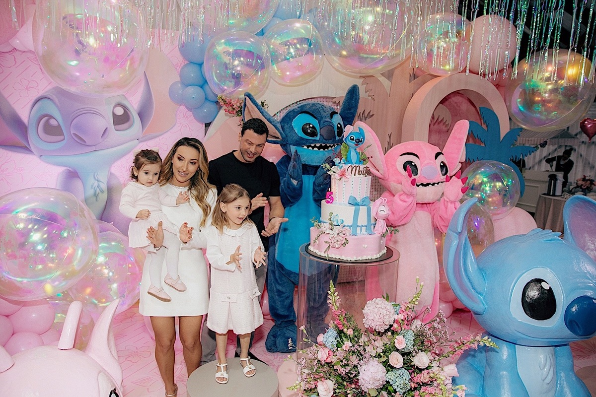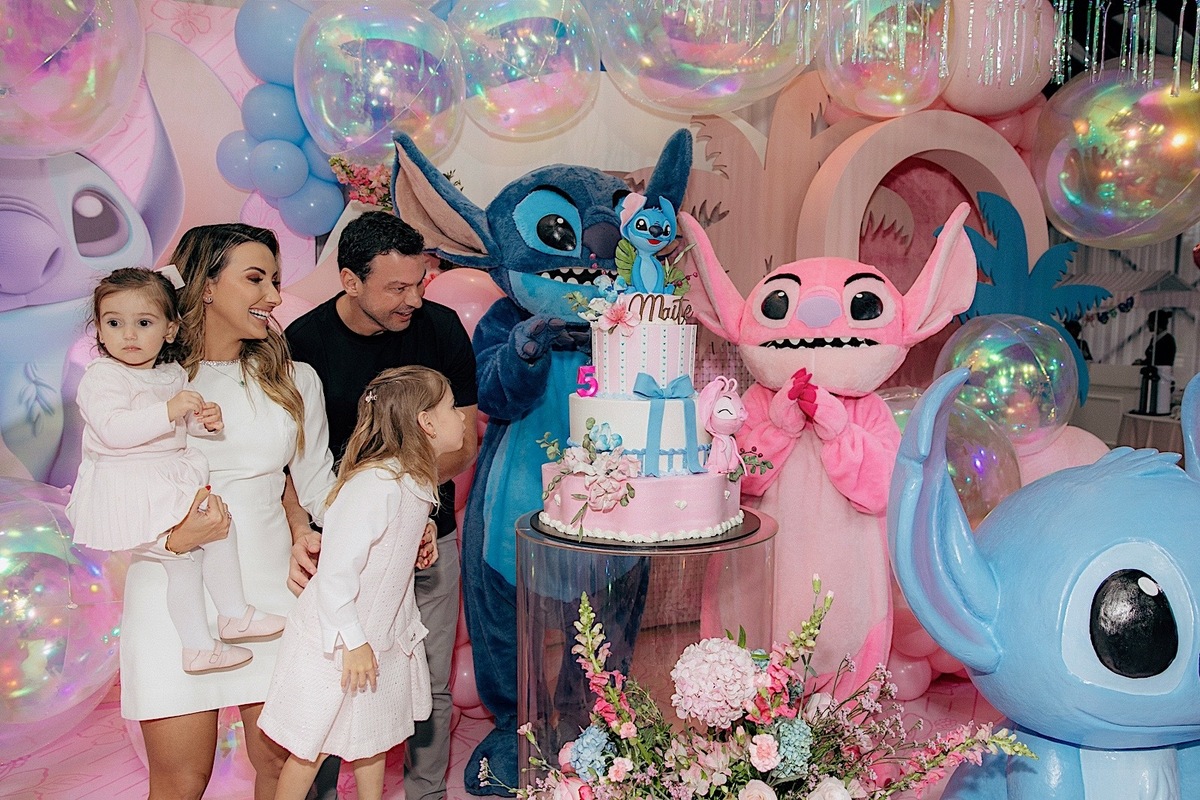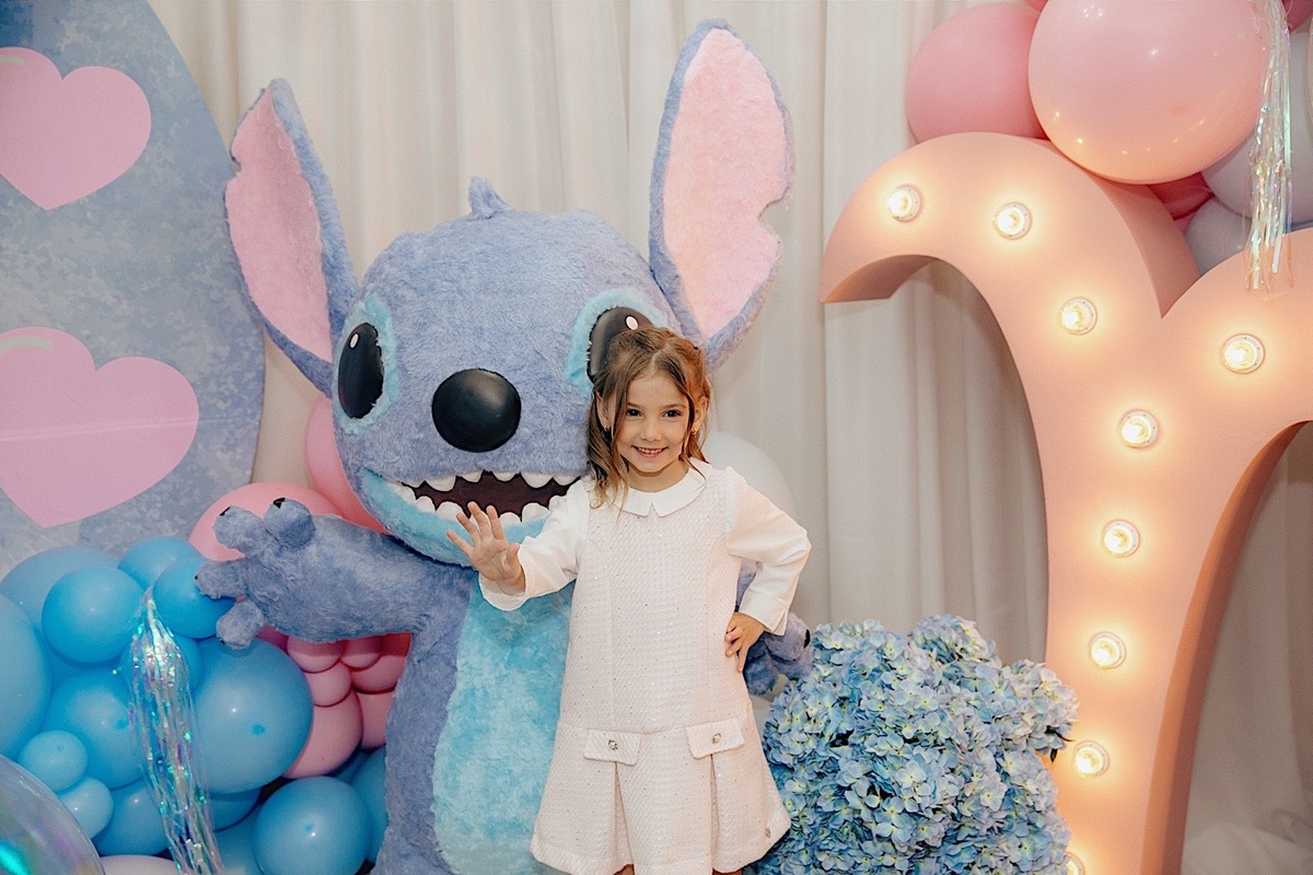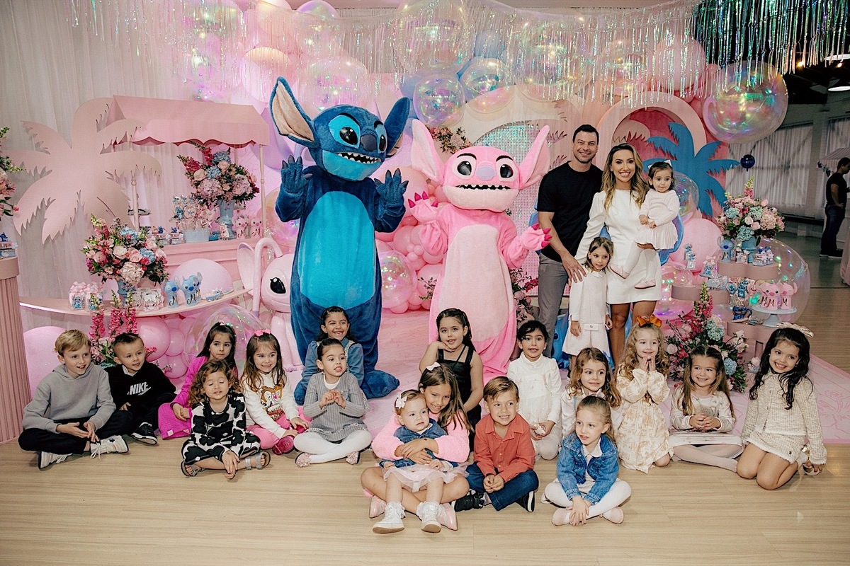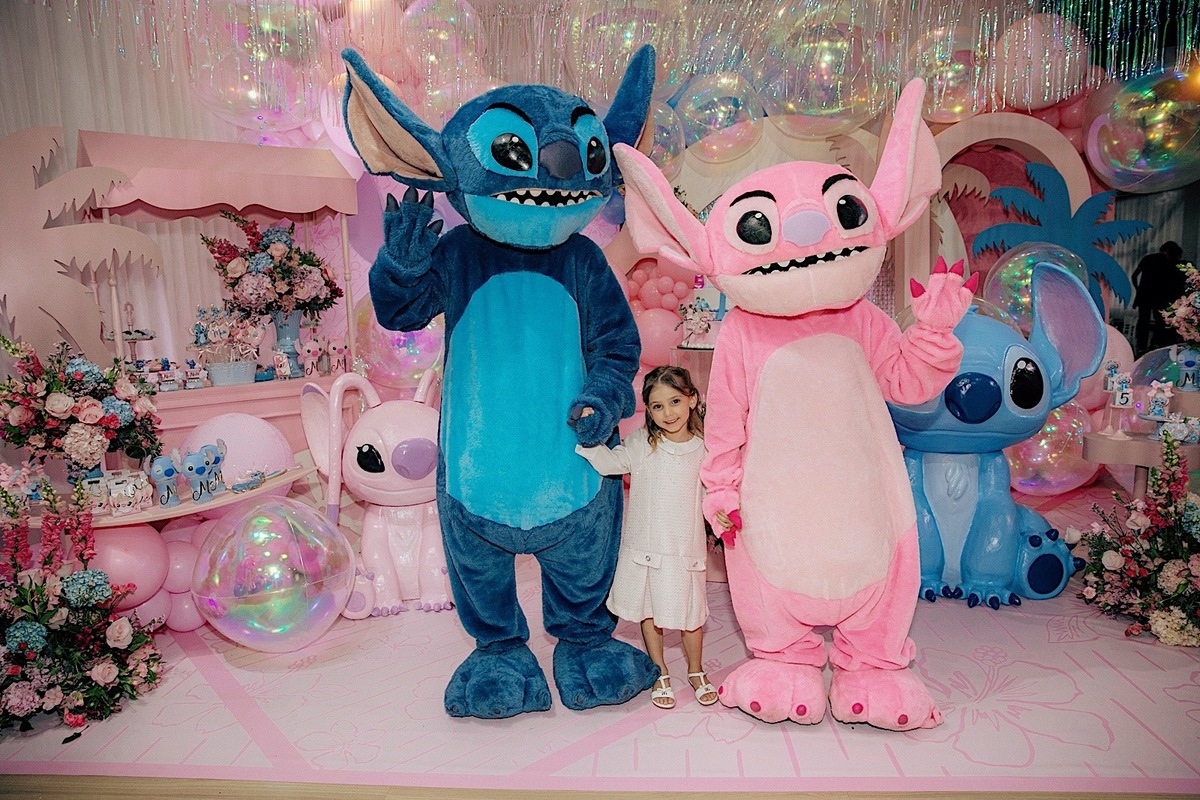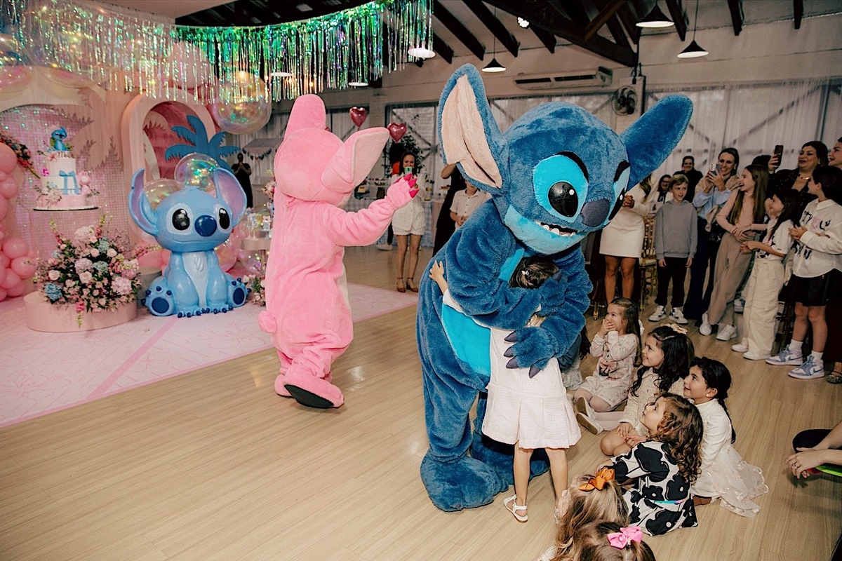A celebração estava encantadora, com o tema de Lilo & Stitch, que as crianças estão amando ultimamente. Maitê comemorou seus 5 anos com muita alegria e teve até apresentação dos personagens, que foi o ponto alto para ela e para todos os pequenos. Em seguida, rolou um parabéns super animado e especial. Os personagens ainda ficaram um tempinho na festa para brincar com as crianças, deixando tudo ainda mais mágico.