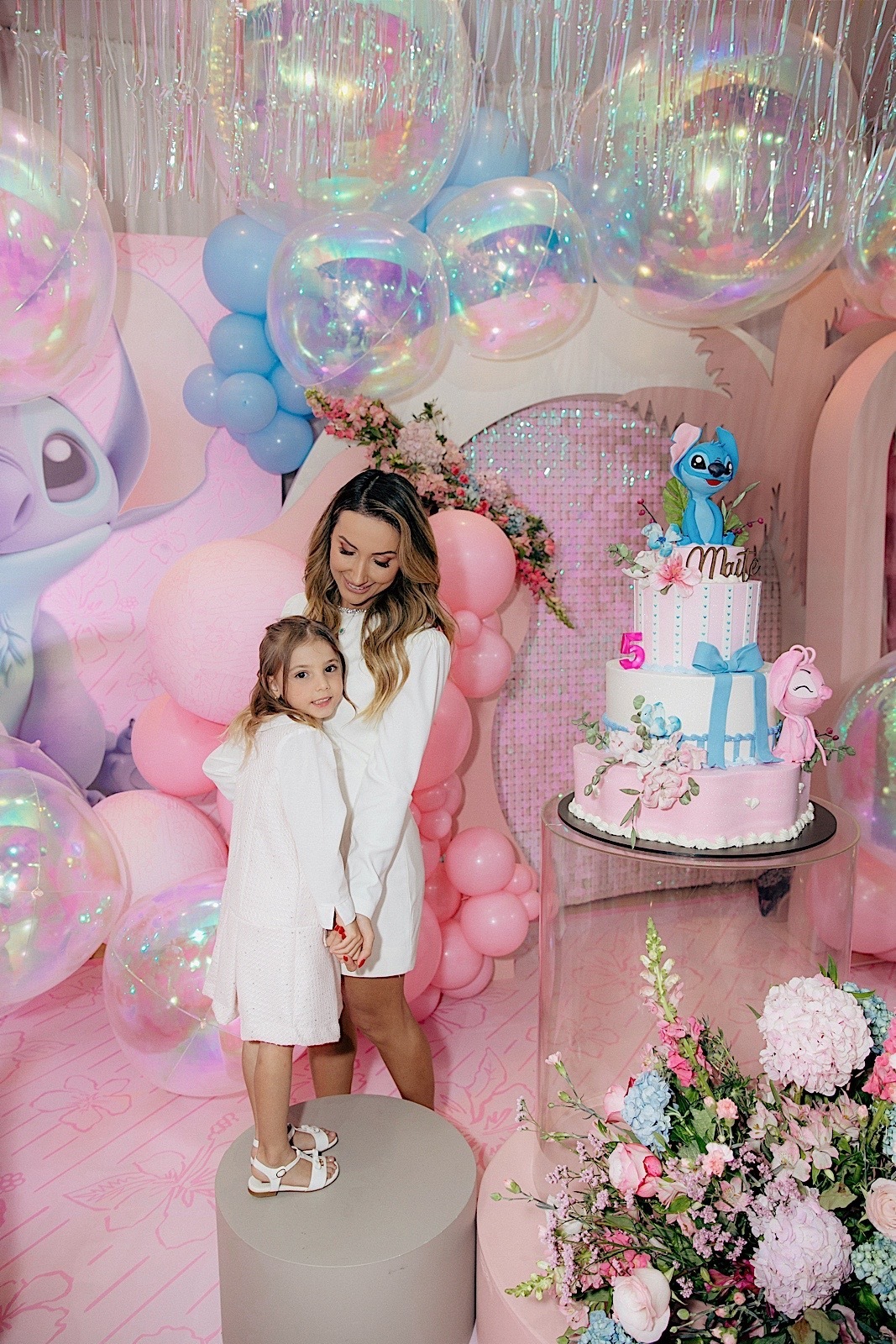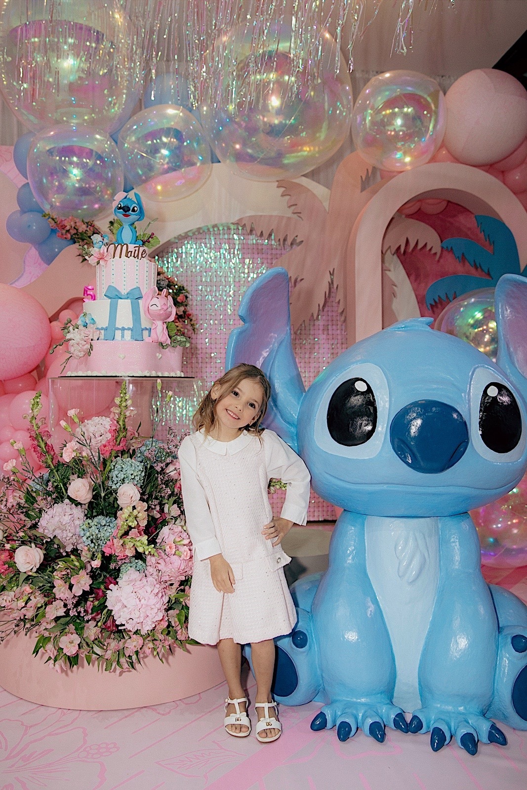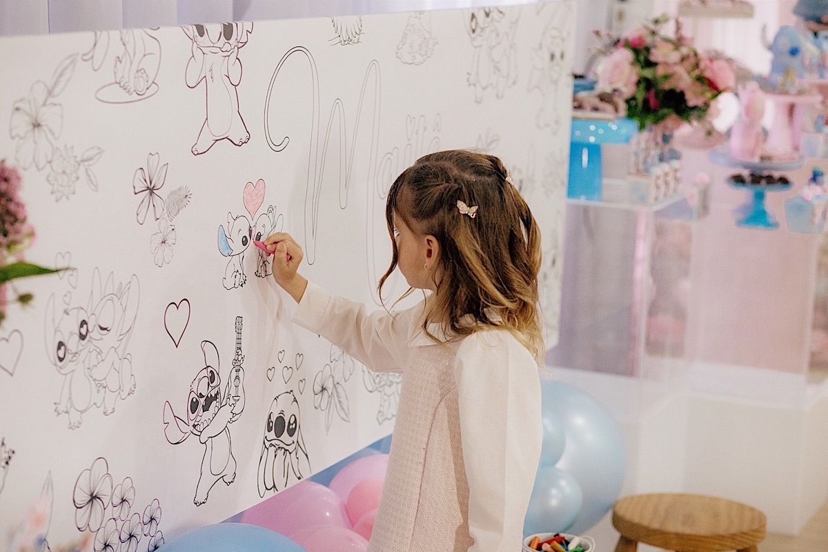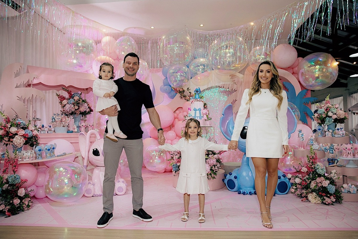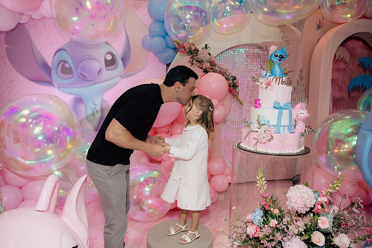 A celebração estava encantadora, com o tema de Lilo & Stitch, que as crianças estão amando ultimamente. Maitê comemorou seus 5 anos com muita alegria e teve até apresentação dos personagens, que foi o ponto alto para ela e para todos os pequenos. Em seguida, rolou um parabéns super animado e especial. Os personagens ainda ficaram um tempinho na festa para brincar com as crianças, deixando tudo ainda mais mágico.