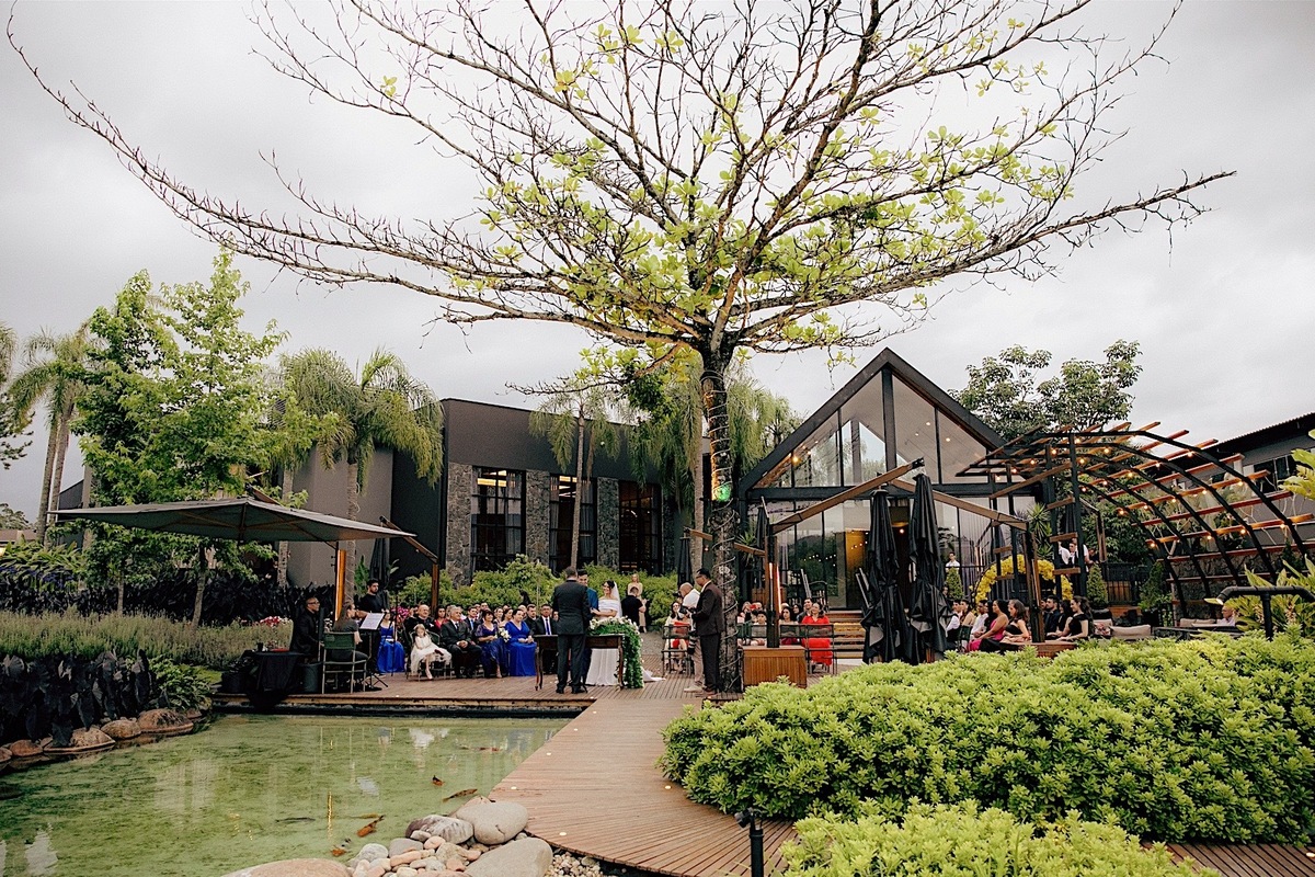 O cenário?! Um lugar encantador em Rio dos Cedros. A ideia era uma cerimônia ao ar livre, e isso já ganhou nosso coração, nós amamos casamentos nesse estilo.