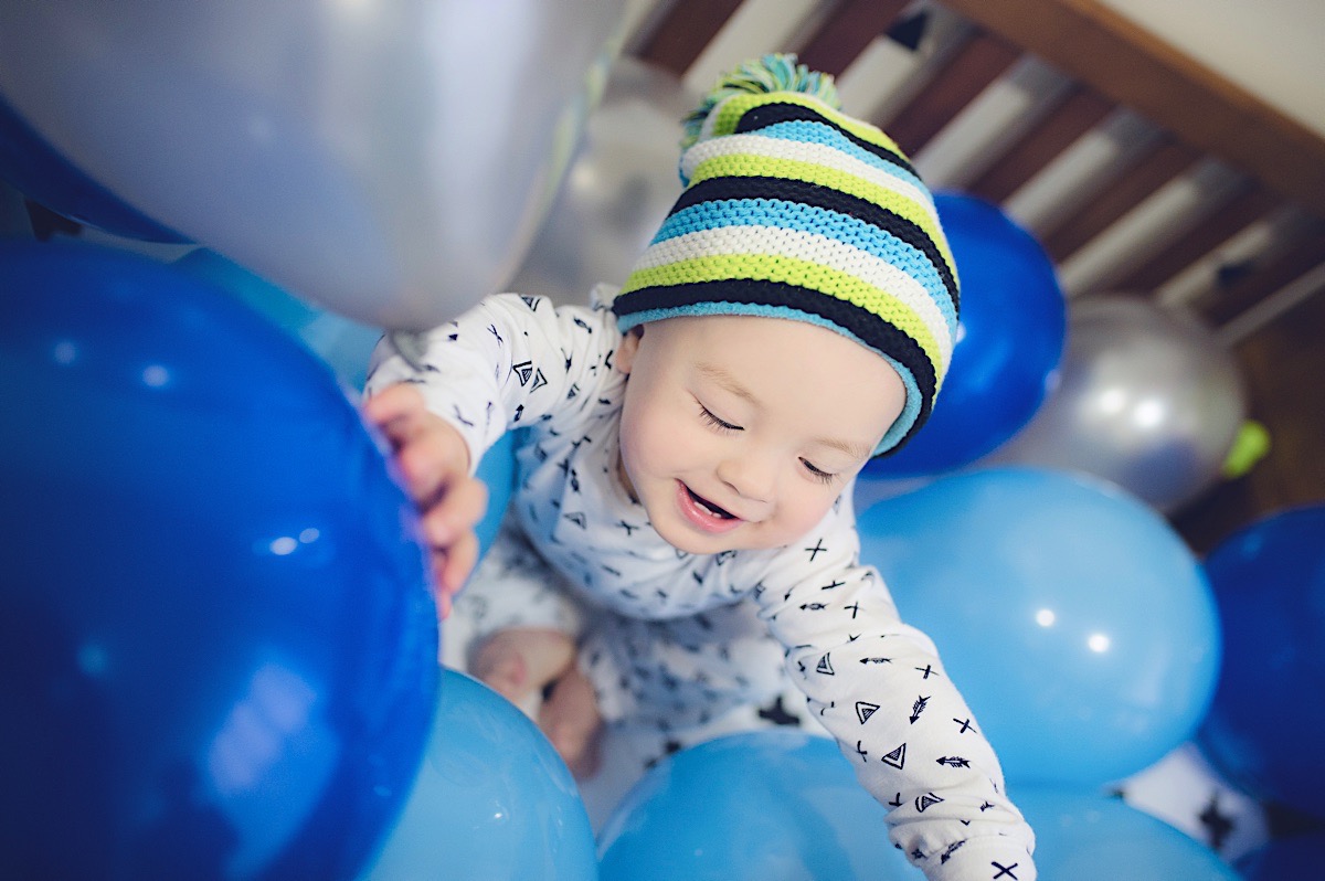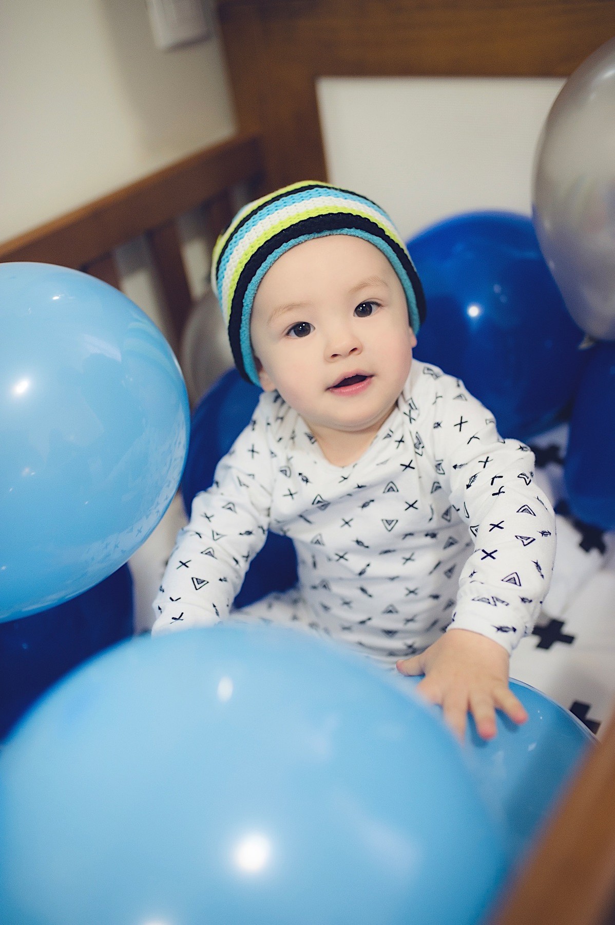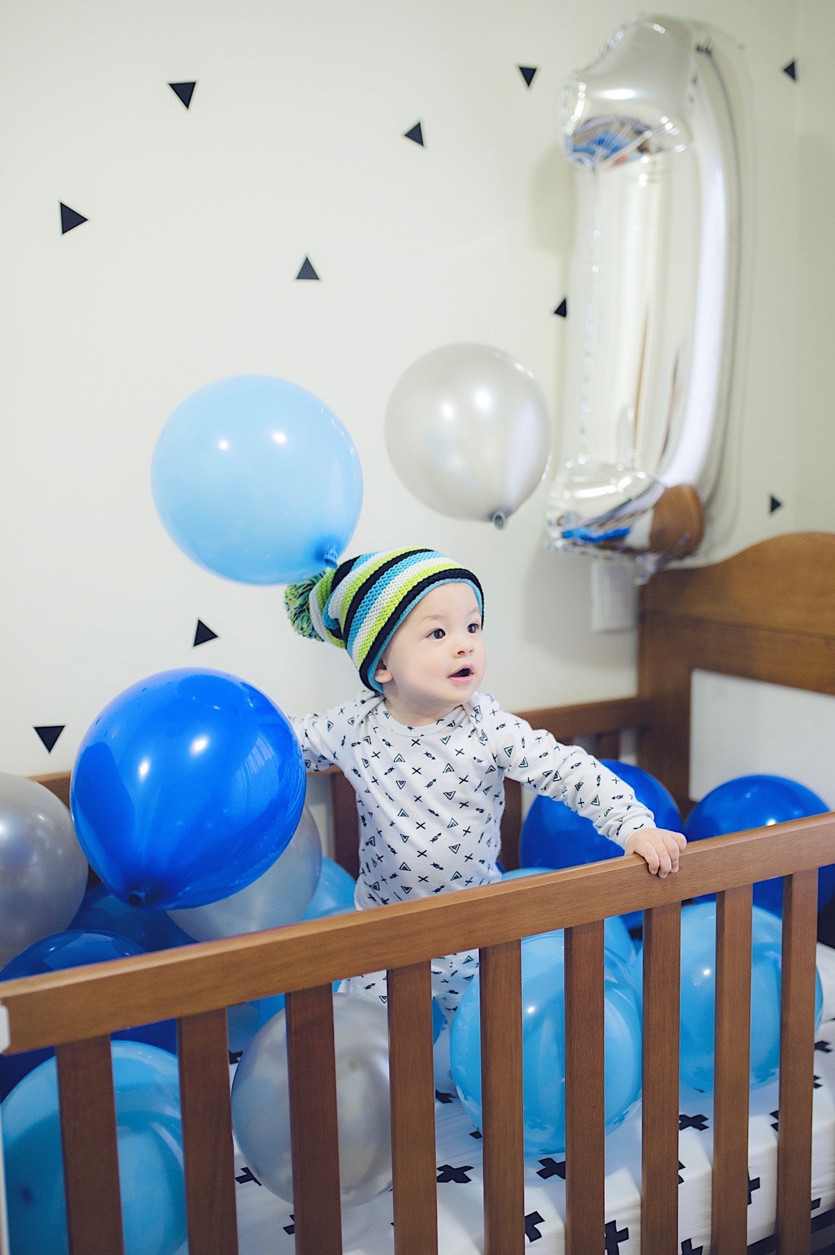 E o Nicolas fez um aninho, como o tempo voa! Para comemorar, os papais Kaory e Ton fizeram um ensaio bem divertido em casa. Começamos o ensaio em seu quartinho cheio de balões e de pijama, porque nada melhor do que ficar de pijama em casa num dia geladinho, não é verdade?