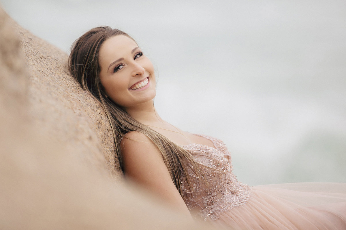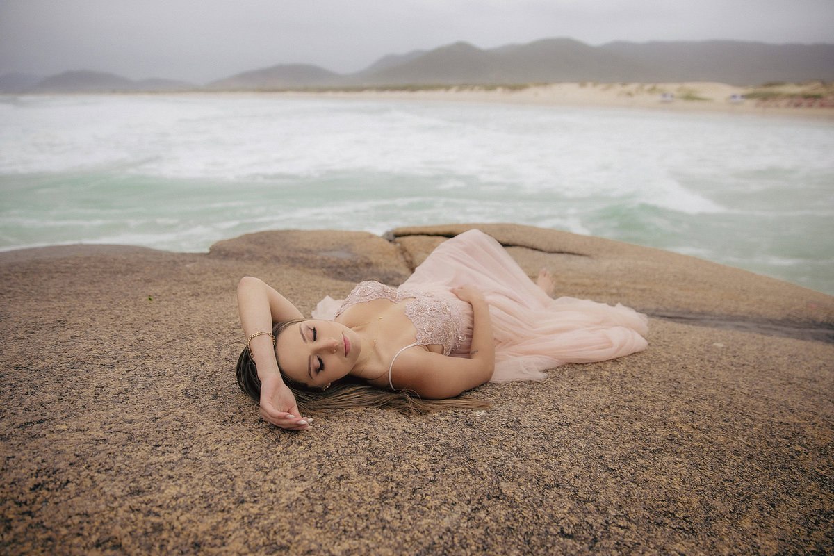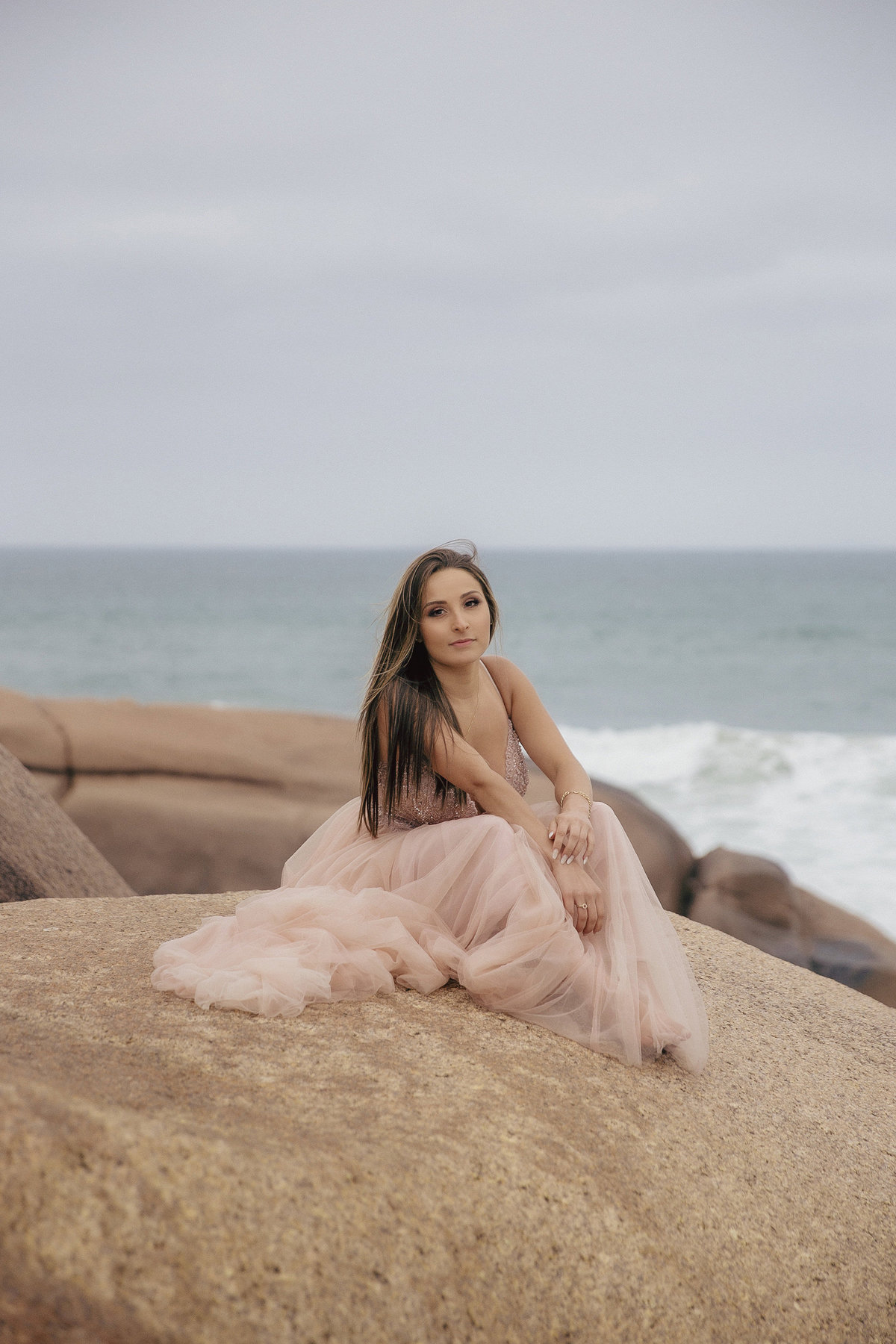 Iniciamos as fotos na praia na parte das pedras, logo fomos para as dunas e finalizamos na praia novamente. Adoramos o contraste da praia com esse vestido fluído e esvoaçante! A ideia era fazer num dia de céu azul, mas com o tempo instável e sem tempo de remarcar, resolvemos fazer, e o resultado ficou magnífico! Conseguimos deixar esse ensaio único para que assim a Brenda sempre se lembre desse dia de forma super especial.