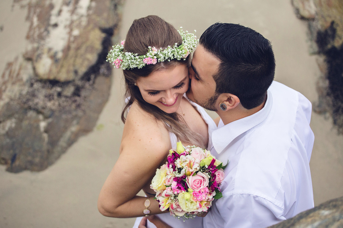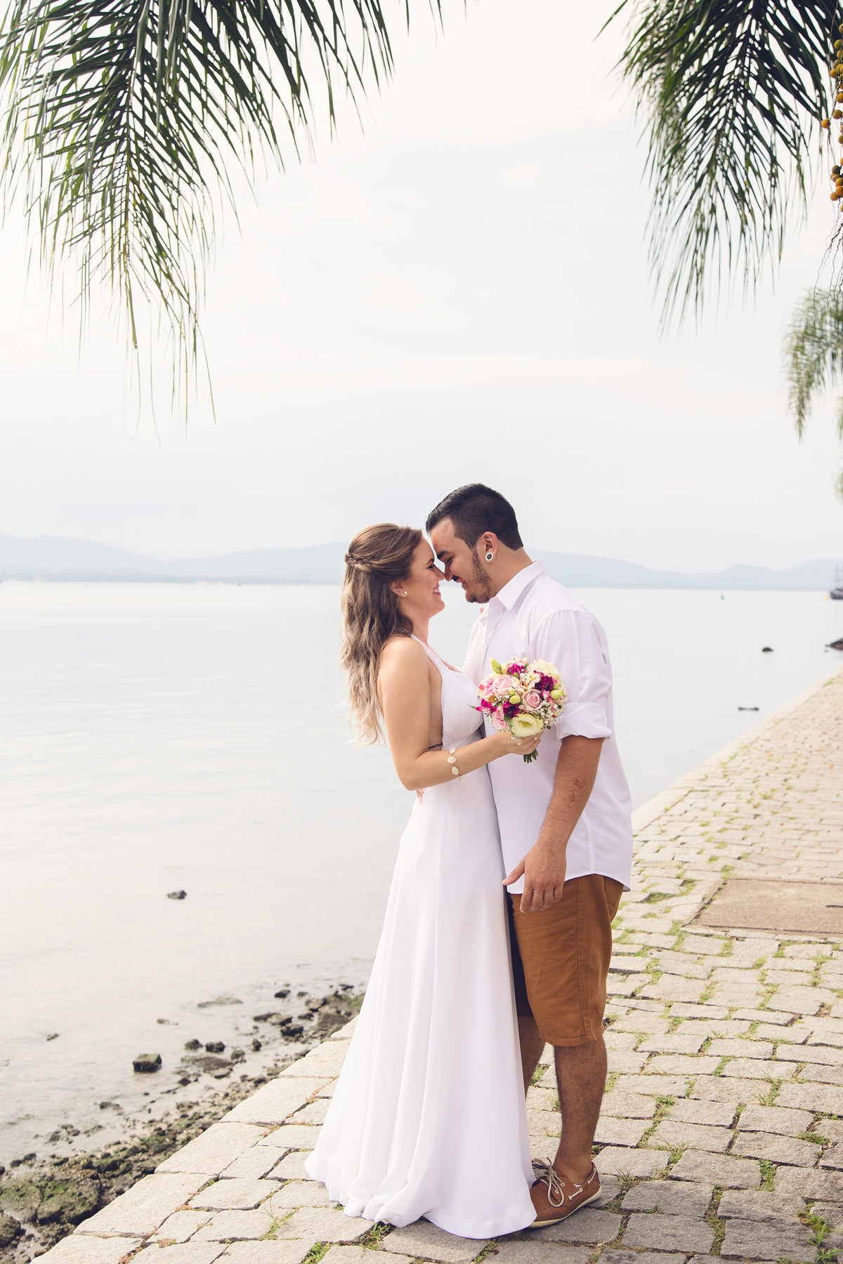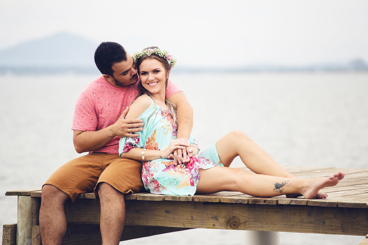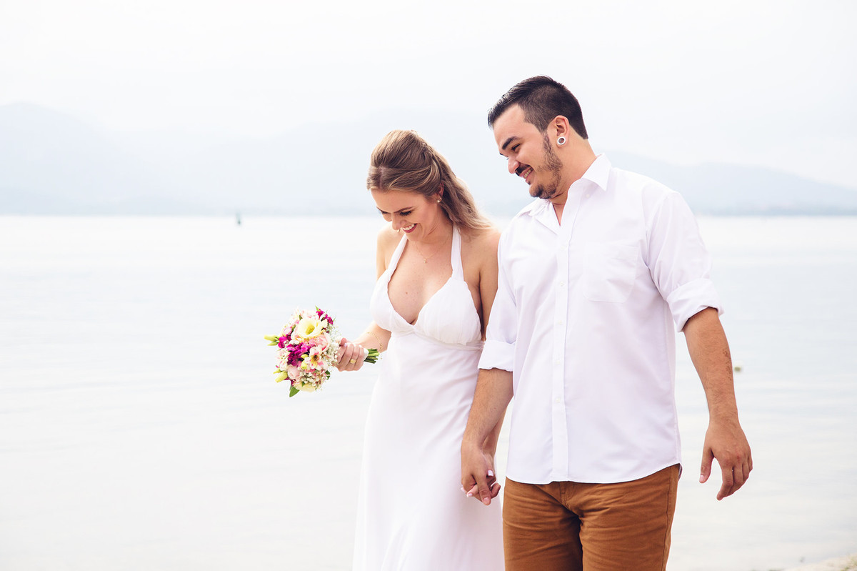 She was an anxious bride, with everything programmed, 2 years before the wedding we signed the contract. Time has passed, we talked about doing the pre wedding session in so many places and we were actually seeing the weather forecast, so the day has come and it was a little bit cloudy and we chose São Francisco do Sul - SC and, with the difficulty to remark the session for a new date, we decided to face the weather.